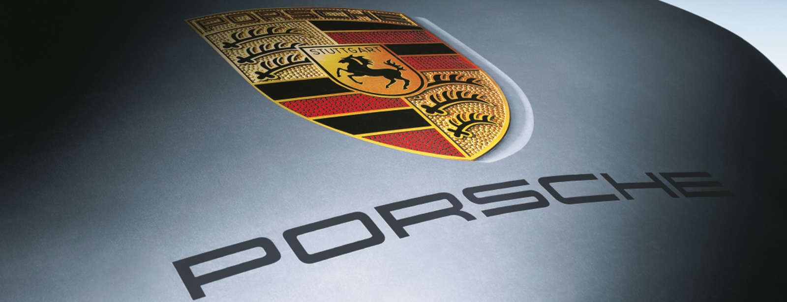 Indoor-Fahrzeugabdeckung aus atmungsaktivem, antistatischem Mischgewebe. Hellgrau, mit farbigem Porsche Wappen und Schriftzug.